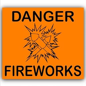 1 x Danger Fireworks-Black on Orange,External Self Adhesive Warning Stickers-Fire Health and ...