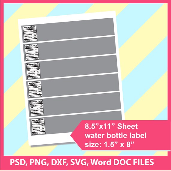EOF Free Online Water Bottle Label Maker | Canva Canva's easy-to-use platform takes the guesswork out of graphic design. With Canva, good design becomes accessible and easy, so beautiful graphics and imagery are right at your fingertips. You can create your own custom water bottle label with a few simple drags, drops and crops. And with Canva's huge selection of design elements, you'll ... Water Bottle Labels & Custom Bottled Water Labels - Bottle Your Brand Water Bottle Labels: low cost, high quality, waterproof and self-adhesive.; Custom Label Templates: Two sizes available.1.75 inches H x 8.25 inches W and 2.125 inches H x 8 inches W. Fits almost all standard store bought bottled water such as Kirkland Signature (Costco), Aquafina, Dasani, Deer Park, Arrowhead and more.
