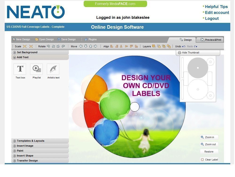 MediaFACE by NEATO® Label Software Review - OnlineLabels We are always adding new labels to design as well. Formerly Mediaface Online. Offers the complete solution for creating custom, professional looking CD/DVD labels Import from an assortment of 500+ high-res images or import directly from digital cameras, webcams, scanners, or files stored on your computer