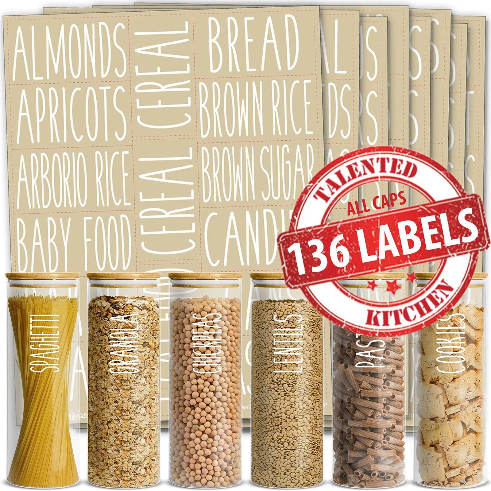Talented Kitchen 136 All Caps Labels for Pantry Containers, Preprinted Black Print on Clear Food Jar Stickers + Numbers for Kitchen Organization and ...